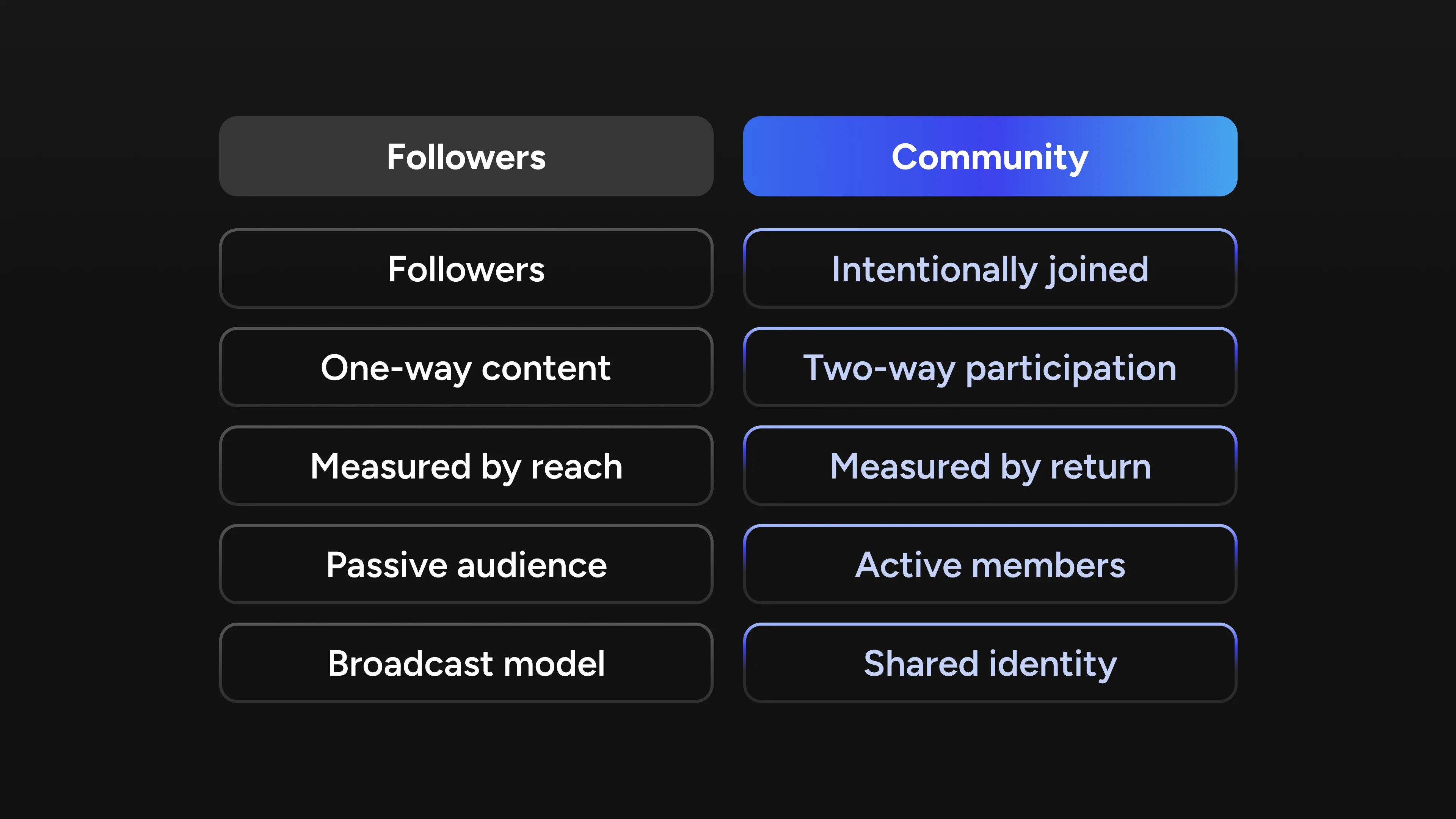 This distinction matters because reach without participation rarely moves the needle. What builds loyalty and long-term influence is engagement, not just impressions. And that kind of engagement lives in community.